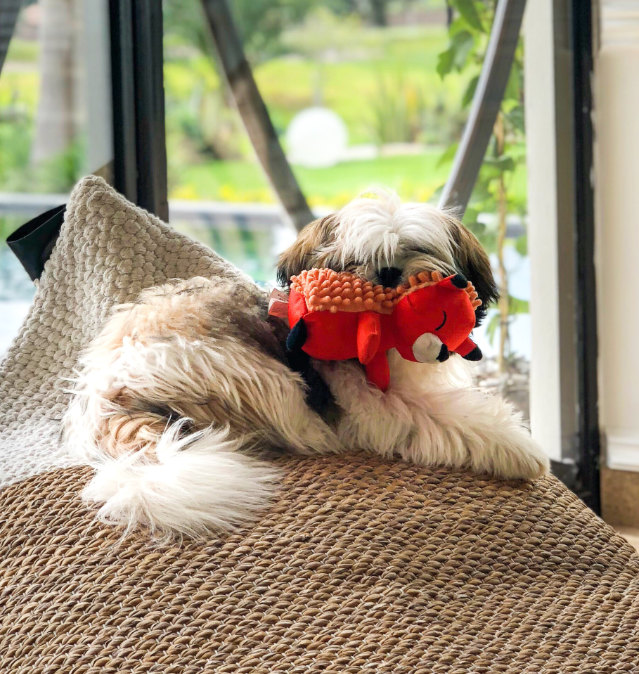 Shuh Tzus’ have a long silky coat, which tends to reach the floor requiring daily brushing to avoid tangles. Their long coat and fast-growing hair require regular grooming. This may be expensive and should be taken into account when considering adopting one of this breed. Often, the coat is clipped short to simplify care, but the coat still requires daily brushing. For conformation showing, the coat must be left in its natural state, though trimming for neatness around the feet and anus is allowed. The shorter cut is typically called a "puppy cut" or a "teddy bear cut" when the puppy cut is accompanied by a fuller, rounder face, resembling a cute and cuddly stuffed animal.